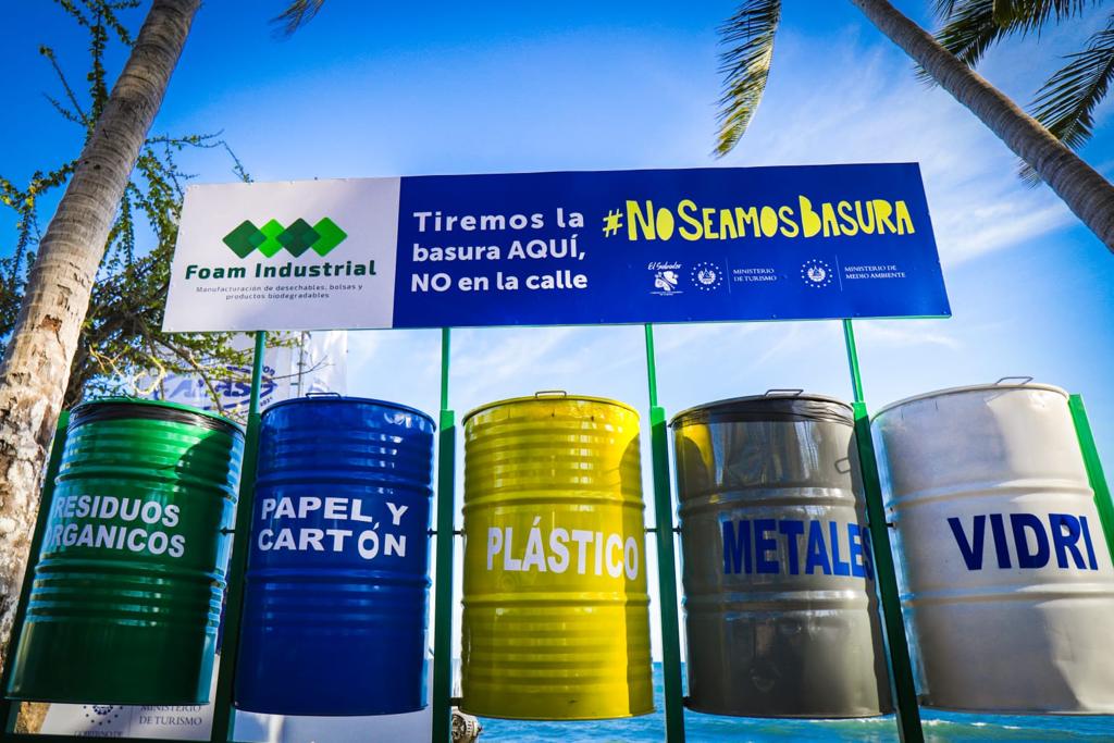 Junto al Ministerio de Medio Ambiente colocamos Eco-Estaciones en puntos de interés turístico como la recién inaugurada Surf City para el pasado campeonato mundial de Surf, en el Cerro Verde, El Imposible, Montecristo, Perquín y otros. Y somos parte de la campaña estatal de #CeroBasuraSV